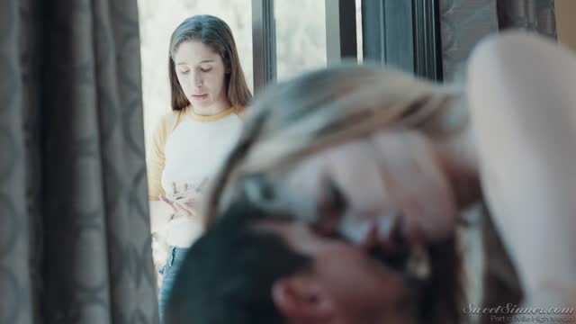 When gorgeous Kali Roses is trying on all her new clothes after a long day of shopping, her creepy stepbrother cannot help but sneak a peek at her incredible body. He tries to hide it, but Kali catches him red handed. Later, they hang out together on the couch and Kalis stepbrother notices that she seems to be playing with herself under the blanket. She admits she has not been able to stop thinking about him creeping on her the other day. He helps fulfill her fantasies by whipping out his big dong and sticking it in her wet mouth. Then, he slams her twat with a passionate swagger that leaves his stepsister breathless. What a wonderful way to bond.